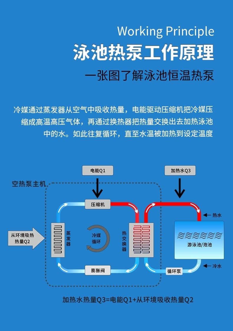 泳池热泵适用场所:桑拿休闲会所、度假村、大型星级度假酒店、体育馆、学校泳池、国内与国际竞赛泳池场馆、温泉水上乐园等大中型室内泳池工程。
